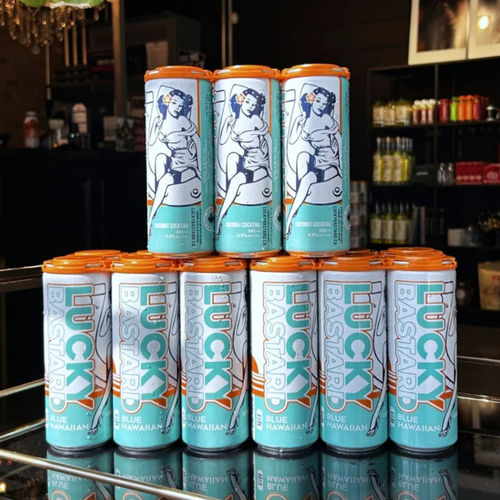 The Lucky Bastard Blue Hawaiian is a tropical escape in a can. Crafted with our Coconut Lime Vodka, pineapple, and a splash of blue curaçao, it’s smooth, refreshing, and perfectly mixed — no shaker required.
